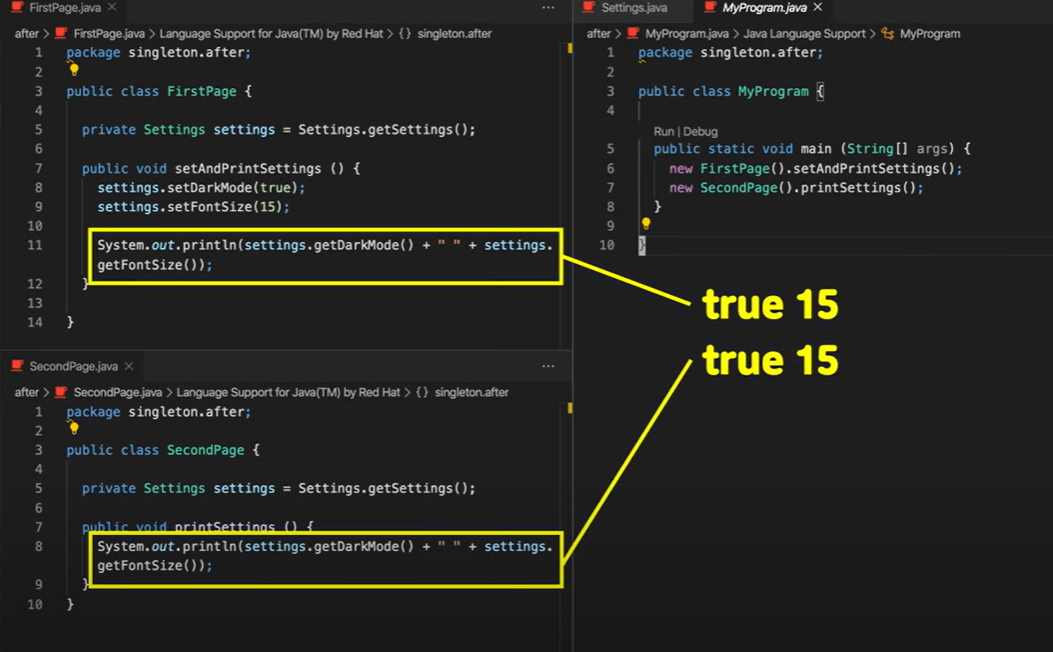-> FirstPage에서 static을 선언해 주었기 때문에 new Settings를 하지 않아도 정적공간의 값이 SecondPage에도 적용되어 같은 15를 출력함