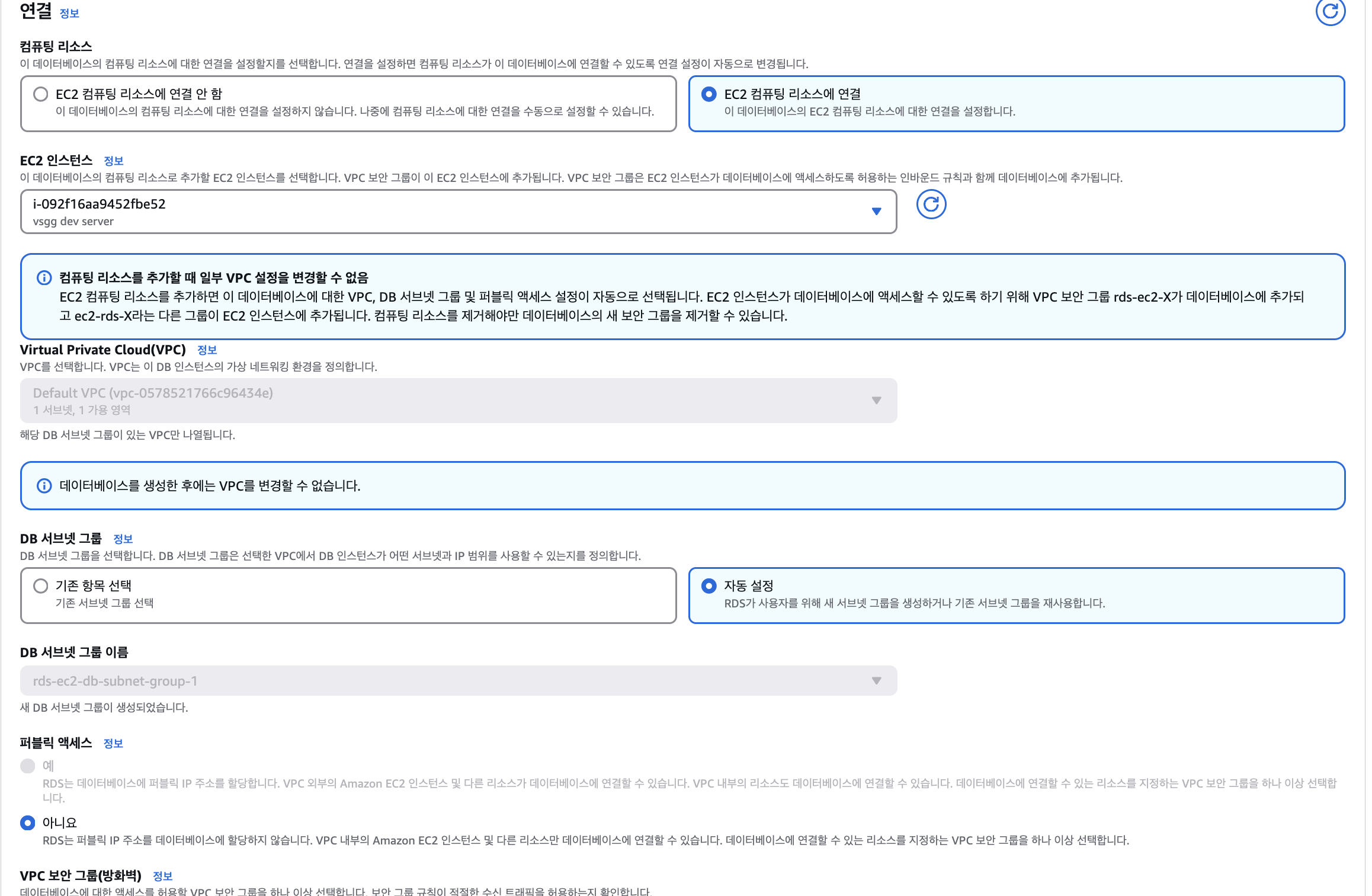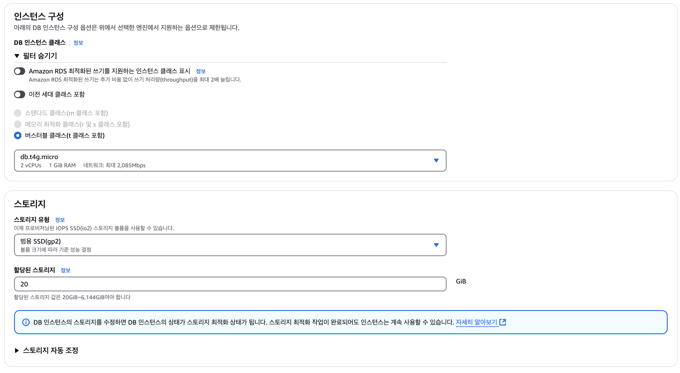 아래 스크린샷처럼 RDS 인스턴스를 생성합니다.
