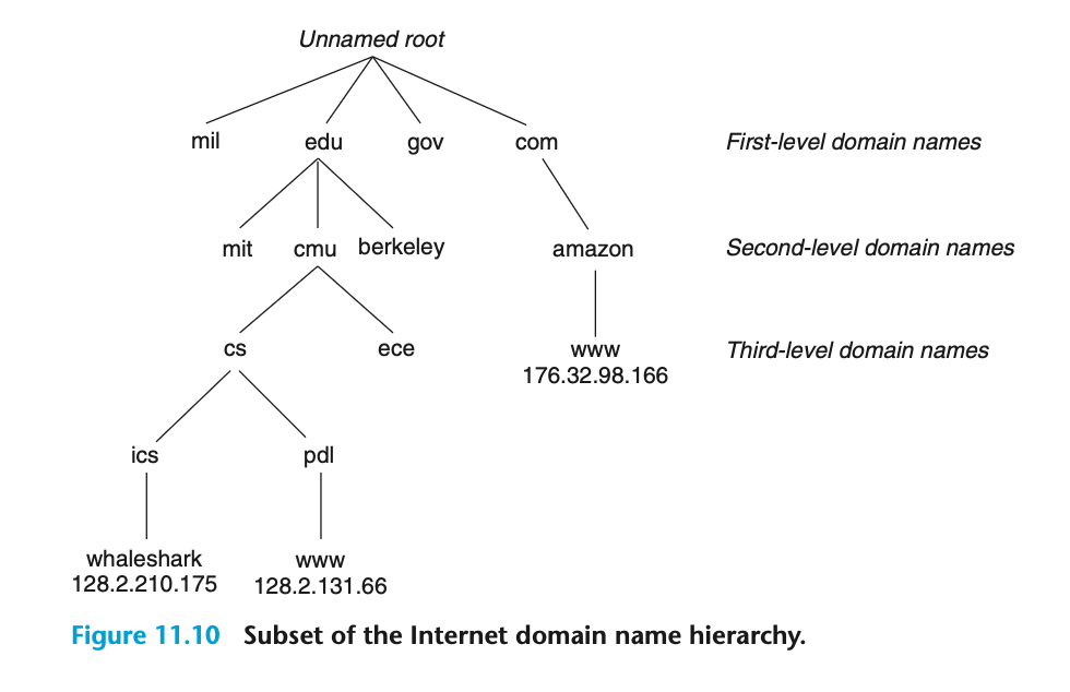 도메인 네임은 기본적으로 트리 구조로 구성되고, 트리 상 위치가 인코딩돼 있습니다. 맨 하위 노드에는 IP가 매핑돼 있군요.