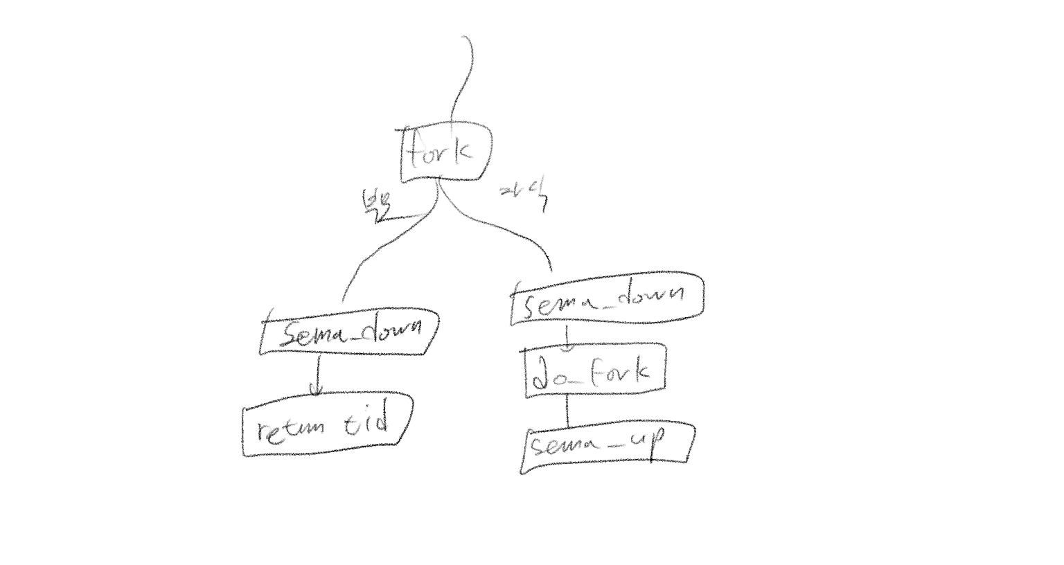 자식은 do_fork 루틴을 통해 포크를 진행하며, 부모는 이 루틴의 성공 여부를 알 때까지 자신의 fork 루틴에서 벗어날 수 없다. 이를 위해 fork_sema를 사용해 아래 순서를 보장한다.