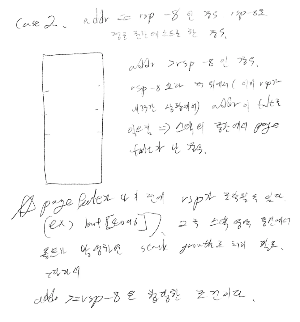 | frame->page에 지정되는 값 | (page 구조체 포인터) 위의 page 포인터 값 | NULL |