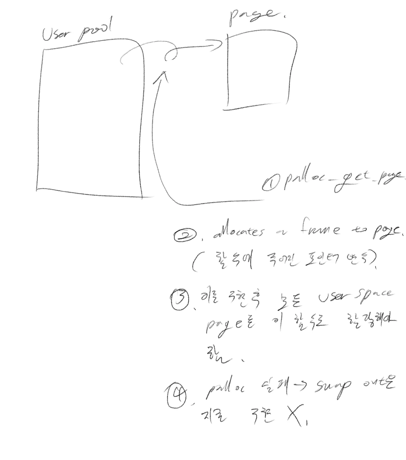 이 함수의 작동 순서는 위 그림과 같습니다. 좌측에 표현된 User Pool은 DRAM과 1대 1로 대응 된 커널 메모리 영역 중에 존재합니다.(이 부분은 이해하기 어렵지만 매우 중요합니다.)