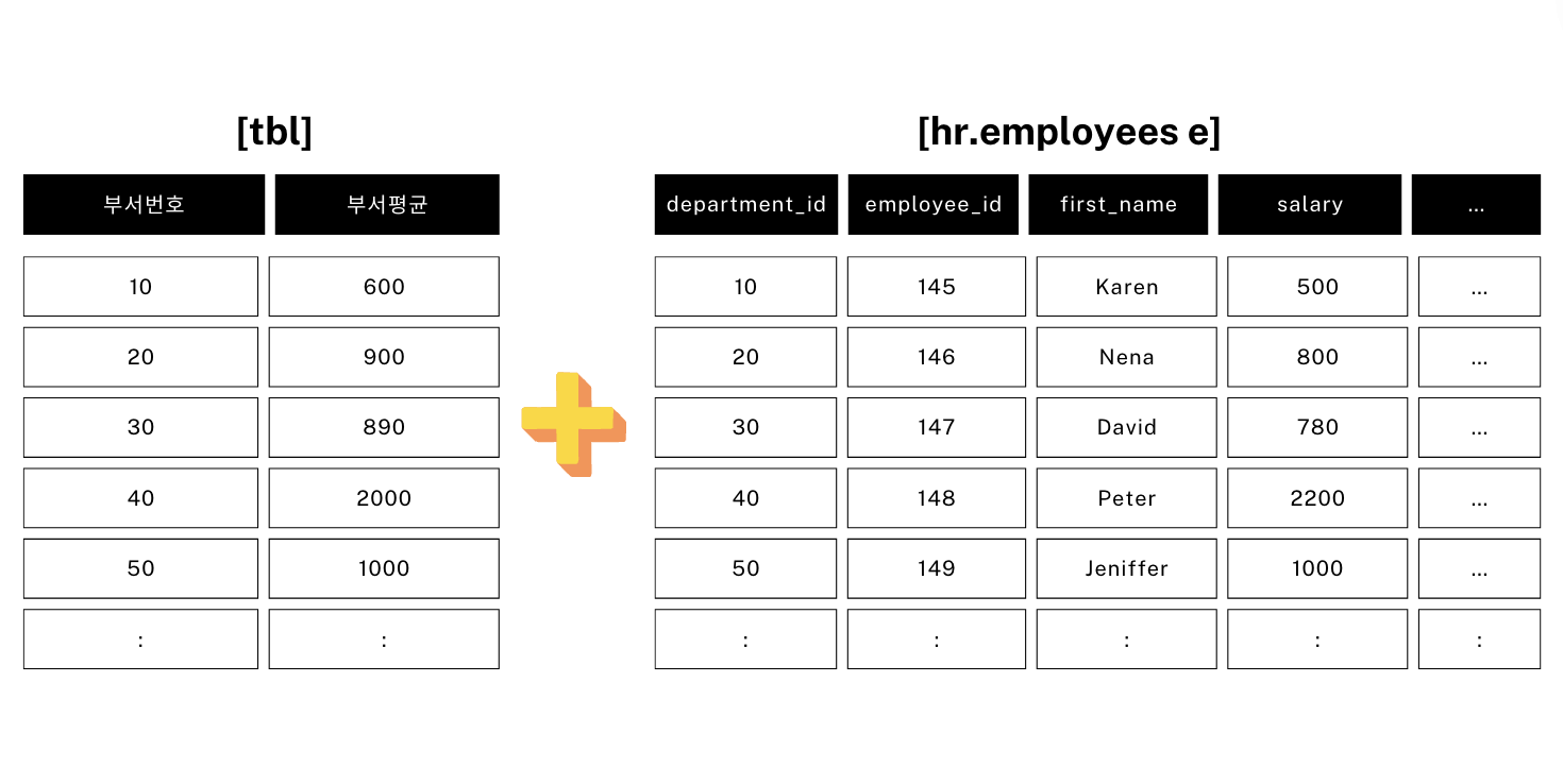 AND e.salary < tbl.๊ธ์ฌํ๊ท