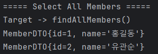 System.out.println("===== Select All Members =====");
