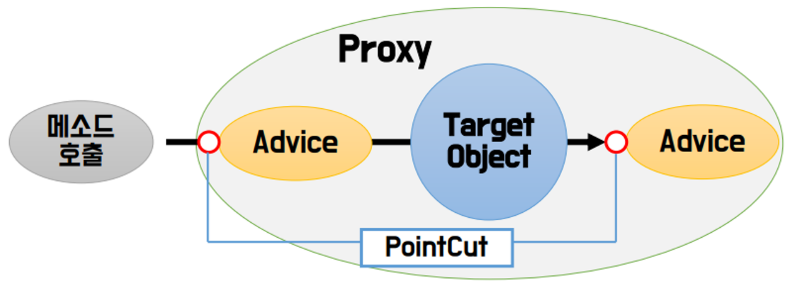| Join point | Advice가 적용될 수 있는 위치를 말한다. |