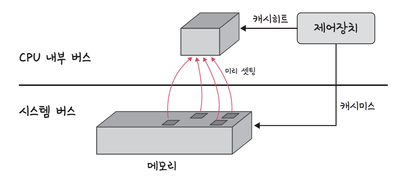 캐시히트는 비교적 위치가 가깝고 CPU 내부 버스를 기반으로 작동해 빠르다.