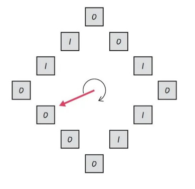 시계 방향으로 돌면서 0을 찾고 0을 찾은 순간 해당 프로세스를 교체하고, 해당 부분을 1로 바꾸는 알고리즘이다.