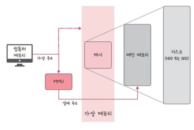 가상 주소는 메모리관리장치(MMU)에 의해 실제 주소로 변환돼 그로 인해 사용자는 실제 주소를 의식할 필요 없이 프로그램을 구축할 수 있다.