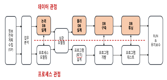 업무가 어떤 데이터와 관련이 있는지 또는 데이터 간의 관계는 무엇인지에 대한 모델링을 통해 ERD를 산출하고 물리적 데이터베이스 설계와 데이터베이스 구축 및 튜닝까지의 과정이 포함된다.