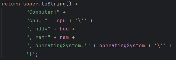 Product{code='null', brand='null', name='null', price=0, manufactureDate=null}Computer{cpu='null', hdd=0, ram=0, operatingSystem='null'}