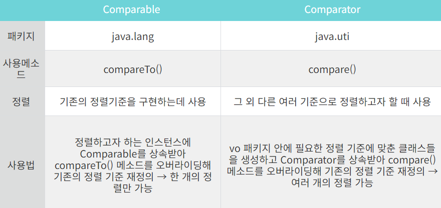 정렬은 compareTo() 메소드가 반환하는 int형의 부호에 따라 정해지게 된다.