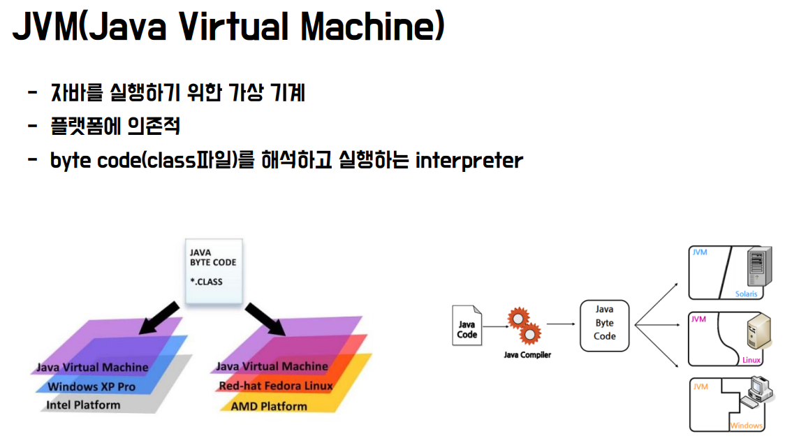 자바 소스코드는 파일 탐색기에서 보면 java 파일로 돼 있지만, 자바 내부의 JVM 속 compiler 가 컴파일을 통해 class 파일로 변경해준다.