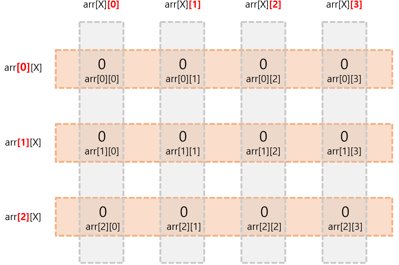 2차원 배열 이상의 배열도 선언 가능하지만 그다지 사용하지는 않는다.