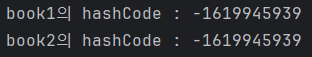 System.out.println("book1의 hashCode : " + book1.hashCode());