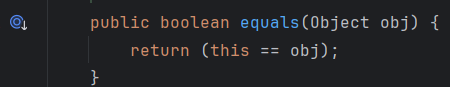equals 메소드는 매개변수로 전달받은 인스턴스와 == 연산해서 true, false 로 반환한다.
