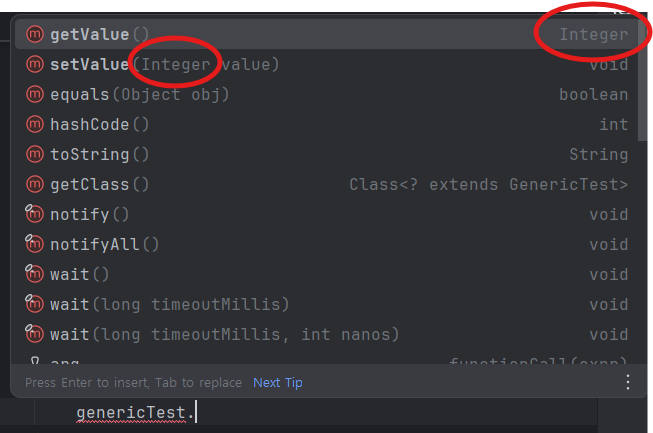 위의 코드를 작성하면 이제 메소드를 불러올 때 자료형이 바뀐 것을 볼 수 있다.