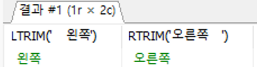 SELECT LTRIM(' 왼쪽'), RTRIM('오른쪽 ');