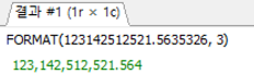 FORMAT: 1000단위마다 콤마(,) 표시를 해 주며 소수점 아래 자릿수(반올림)까지 표현한다.