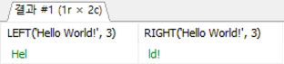 SELECT LEFT('Hello World!', 3), RIGHT('Hello World!', 3);