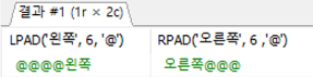 SELECT LPAD('왼쪽', 6, '@'), RPAD('오른쪽', 6 ,'@');