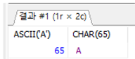 SUBSTRING: 시작 위치부터 길이만큼의 문자를 반환(길이를 생략하면 시작 위치부터 끝까지 반환)