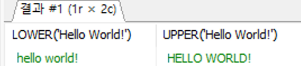 SELECT LOWER('Hello World!'), UPPER('Hello World!');