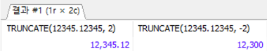 TRUNCATE: 소수점을 기준으로 정수 위치까지 구하고 나머지는 버림