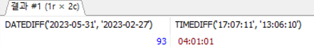 TIMEDIFF: 시간1 - 시간2의 결과를 구함