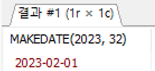 MAKEDATE: 해당 연도의 정수만큼 지난 날짜를 구한다.