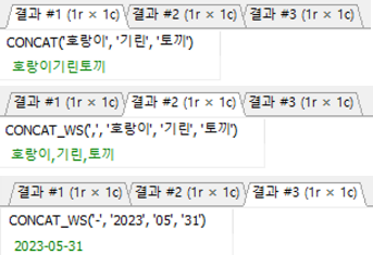 CONCAT_WS: 구분자와 함께 문자열을 이어붙임