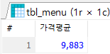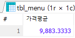 SELECT CAST(AVG(menu_price) AS DOUBLE) AS '가격평균' FROM tbl_menu;