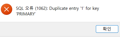 잘 보면 user_no : 1, 2, 1 로 1이 겹치게 되면서 primary key (NOT NULL + UNIQUE) 에서 중복때문에 에러가 생긴다.