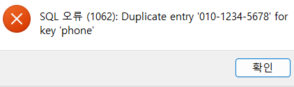 UNIQUE(phone) -- phone에다가 컬럼댈 필요 없음