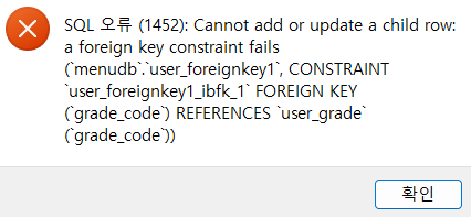 FOREIGN KEY(grade_code) REFERENCES user_grade(grade_code)