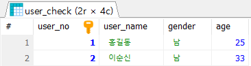 gender, age에 CHECK 제약조건을 넣고 테이블을 만들어보자.