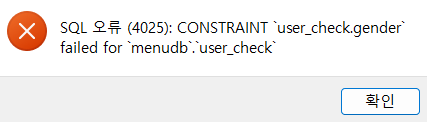 gender VARCHAR(3) CHECK(gender IN ('남', '여')), -- 제약조건을 활용한다