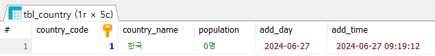 이번엔 tbl_country 라는 테이블을 만들어보았다.