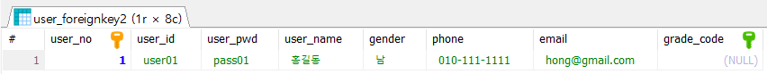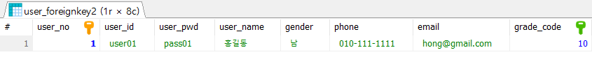그럼 사용자 테이블은 FK 로 USER_GRADE의 PRIMARY KEY (이하 PK) 를 가지고 있어야 한다.