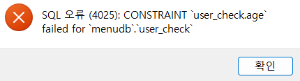 age INT CHECK(age >= 19) -- 제약조건을 활용. 조건식에 따라 true, false 값