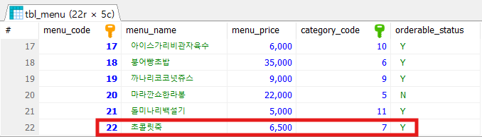 22번째 row에 데이터가 추가된 것을 알 수 있다.