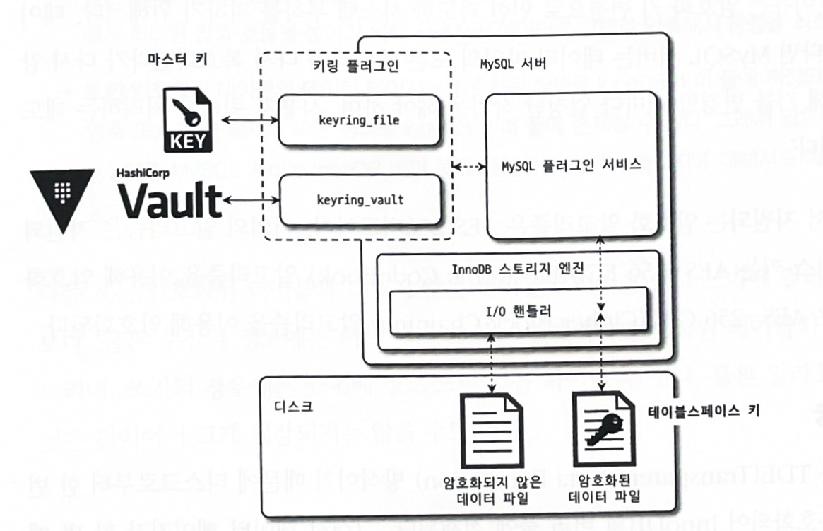 MySQL 서버의 TDE에서 암호화 키는 키링(KeyRing) 플러그인에 의해 관리된다.
