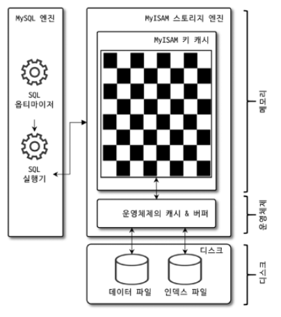 MyISAM의 키 캐시 : InnoDB의 버퍼 풀과 비슷한 역할을 한다.