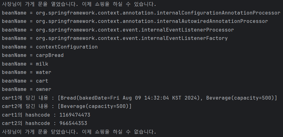 System.out.println("사장님이 가게 문을 열었습니다. 이제 쇼핑을 하실 수 있습니다.");
