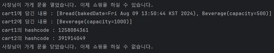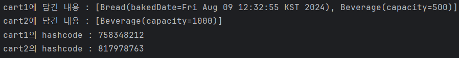 System.out.println("cart1의 hashcode : " + cart1.hashCode());