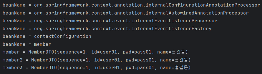 MemberDTO member2 = (MemberDTO) context.getBean("member2");