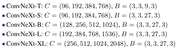 ConvNeXt-T/S/B/L/XL을 만들었다.