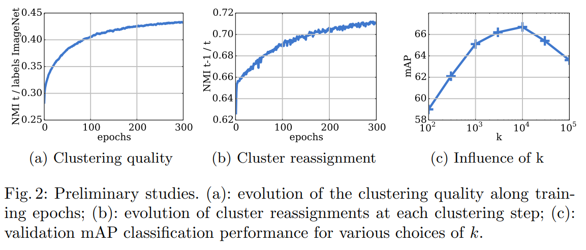 (a)는 cluster assignment와 ImageNet label이다. label에 공유하는 정보가 점차 증가.