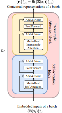intersample attention은 논문에서 제시하는 방법으로 row(data sample)의 classification을 다른 row와 연관을 짓는 방법으로 강화를 하였다.