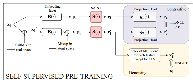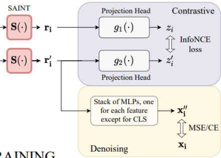SAINT는 tabular data 학습의 어려움을 극복하기 위해 여러가지 방법을 사용하였는데