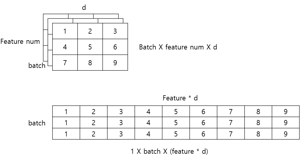 그리고 는 embedding layer로 각 feature을 -차원으로 embed한다.